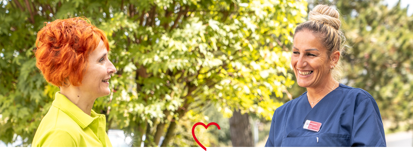 Zwei Pflegekräfte unterhalten sich